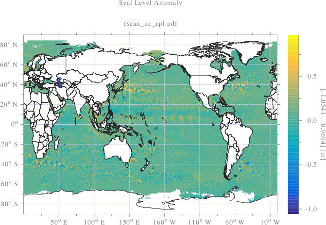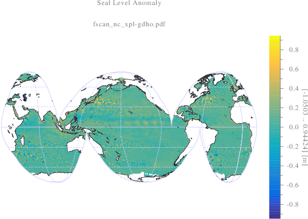 int fscan_nc_xpl(){ scltracefa(§, ƒ, ); scltracefc("scl-%s (%s) : %s\n", sclver(), sclsec(), temps_char(0)); scltracefc(" < netcdf-%s\n\n", sclver_nc()); std::string ncfilename = "dt_global_allsat_phy_l4_20161130_20170530.nc"; std::string ncfilepath = "./don/netcdf/" + ncfilename; finfo_nc(ncfilepath.c_str()); //--------------------------------------------------------------------- //[>INPUT SURFACE] //--------------------------------------------------------------------- size_t sot; int dimn; void **nc = fscan_nc(ncfilepath.c_str(), "sla", &sot, &dimn); int *crdn=(int*)nc[0], latn=crdn[1], lonn=crdn[2], loni, lati; scltracefc("lonn=%d, latn=%d\n", lonn, latn); int ***sla = (int***)nc[1]; //[timn=1][latn=720][lonn=1440] int csla; double **sla_m = newmat<double>(lonn, latn); int **slac = newmat<int>(lonn, latn, 1); for(loni=0;loni<lonn;loni++){ for(lati=0;lati<latn;lati++){ csla = sla[0][lati][loni]; // Test de la valeur de remplissage '_FillValue' if(csla==-2147483647){ slac[loni][lati]=0; } // Mise a l'echelle 'scale_factor' sla_m[loni][lati] = (double)csla*0.000100; } } // Longitude [deg] nc = fscan_nc(ncfilepath.c_str(), "longitude", &sot, &dimn); float *lon=(float*)nc[1]; double *lon_deg=new double[lonn]; for(loni=0;loni<lonn;loni++){ lon_deg[loni]=(double)lon[loni]; } // Latitude [deg] nc = fscan_nc(ncfilepath.c_str(), "latitude", &sot, &dimn); float *lat=(float*)nc[1]; double *lat_deg=new double[latn]; for(lati=0;lati<latn;lati++){ lat_deg[lati]=(double)lat[lati]; } scl::string_c imgname=scl::string_c(ƒ)+".pdf", imgpath="./srt/"+imgname; grafmat_dis(imgpath.c_str(), lonn, latn, sla_m, "instatus", slac, "x", lon_deg, "y", lat_deg, "geographic", "flat", "colormap", "paruline", "subtitlex", imgname.c_str(), "zlabel", "[<zrange>] [m]", "title", "Seal Level Anomaly", "linespeca", "-a", ); #ifndef NON_SHQ_SCL tabx_t slax; slax.sot = sizeof(int); slax.dimn = 2; slax.crdn = new int[2]; slax.crdn[0]=lonn; slax.crdn[1]=latn; slax.crde = new int[2]; slax.crde[0]=lonn; slax.crde[1]=latn; slax.tabx = (void*)slac; std::string jsoname=std::string(ƒ)+".json", jsonpath="./srt/"+jsoname; shq::beginDrawing(/*jsonpath*/); // <Initializes the 🦅 "connection" shq::newFigure("fscan_nc"); // <Creates a new 🦅 figure; shq::Params prms = shq::Params("colormap","paruline"); prms["instatus"] = slax; shq::drawSurface(lonn, latn, sla_m, 0, 0, 1, 1, prms); shq::axisAuto(); shq::axisEqual("fscan_nc"); /*shq::setFigureProperties("drawline_shq", shaqParams("x",0,"y",220,"width",450,"height",100));*/ std::vector<std::string> labels; labels.push_back("[dim-1]"); labels.push_back("[dim-2]"); labels.push_back("[dim-3]"); shq::axisLabels(labels); shq::saveImage("./srt/fscan_nc.svg"); shq::endDrawing(); // <Closes the 🦅 "connection" #endif //--------------------------------------------------------------------- //[<INPUT SURFACE] //--------------------------------------------------------------------- //--------------------------------------------------------------------- //[>PROJECTION] //--------------------------------------------------------------------- double stlona_deg=min<double>(lonn, lon_deg), stlone_deg=max<double>(lonn, lon_deg); double stlata_deg=min<double>(latn, lat_deg), stlate_deg=max<double>(latn, lat_deg); // Global position number int stn = lonn*latn; double *stlonrad = new double[stn], *stlatrad = new double[stn]; maillkar(lonn, stlona_deg, stlone_deg, latn, stlata_deg, stlate_deg, 1, stlonrad, stlatrad); deg_rad(stn, stlonrad, stlonrad); deg_rad(stn, stlatrad, stlatrad); double *stxgdho = new double[stn], *stygdho = new double[stn]; int *stregion = new int[stn]; lls_gdho(stn, stlonrad, stlatrad, stxgdho, stygdho, stregion); //--------------------------------------------------------------------- //[<PROJECTION] //--------------------------------------------------------------------- //--------------------------------------------------------------------- //[>VIEW GRID] //--------------------------------------------------------------------- double dstn = (double)stn; double stxa_gdho = min<double>(stn, stxgdho); double stxe_gdho = max<double>(stn, stxgdho); double stya_gdho = min<double>(stn, stygdho); double stye_gdho = max<double>(stn, stygdho); // Projection point surface double stareagdho = (stxe_gdho-stxa_gdho)*(stye_gdho-stya_gdho); // View projection x point number int xn_gdho = (int)((dstn)*(stxe_gdho-stxa_gdho)/(stareagdho)); // View projection y point number int yn_gdho = (int)((dstn)*(stye_gdho-stya_gdho)/(stareagdho)); scltracefc("xgdhon=%d, ygdhon=%d\n", xn_gdho, yn_gdho); int gdhon = xn_gdho*yn_gdho, gdhoi; double *vwx_gdho=new double[gdhon], *vwy_gdho=new double[gdhon]; double *vwz_gdho=new double[gdhon]; maillkar(xn_gdho, stxa_gdho, stxe_gdho, yn_gdho, stya_gdho, stye_gdho, 1, vwx_gdho, vwy_gdho); scltracefc("stxa_gdho=%lf, stxe_gdho=%lf\n", stxa_gdho, stxe_gdho); scltracefc("stya_gdho=%lf, stye_gdho=%lf\n", stya_gdho, stye_gdho); double *vwlon=new double[gdhon], *vwlat=new double[gdhon]; int *vwin_gdho=new int[gdhon], *vwregion=new int[gdhon]; // Inverse projection gdho_lls(gdhon, vwx_gdho, vwy_gdho, vwlon, vwlat, vwregion); rad_deg(gdhon, vwlon, vwlon); rad_deg(gdhon, vwlat, vwlat); // Translation pour interpolation longitude dans 0-360 for (gdhoi=0;gdhoi<gdhon;gdhoi++){ if (vwlon[gdhoi]<0){ vwlon[gdhoi]+=360; } } gdhoi=0; scltracefc("vwlon[%d]=%lf, vwlat[%d]=%lf, vwregion[%d]=%d\n", gdhoi, vwlon[gdhoi], gdhoi, vwlat[gdhoi], gdhoi, vwregion[gdhoi]); //🔬 interpmat(lonn, latn, sla_m, slac, stlona_deg, stlone_deg, stlata_deg, stlate_deg, gdhon, vwlon, vwlat, vwz_gdho, , , vwin_gdho); // inverse projection instatus is added to interpolation instatus for (gdhoi=0;gdhoi<gdhon;gdhoi++){ if (vwregion[gdhoi]<=0){ vwin_gdho[gdhoi]=0; } } double **vwz = tab_mat<double>(xn_gdho, yn_gdho, vwz_gdho, 1); int **vwin = tab_mat<int>(xn_gdho, yn_gdho, vwin_gdho, 1); double *vwx = newtablin(xn_gdho, stxa_gdho, stxe_gdho); double *vwy = newtablin(yn_gdho, stya_gdho, stye_gdho); //----------------